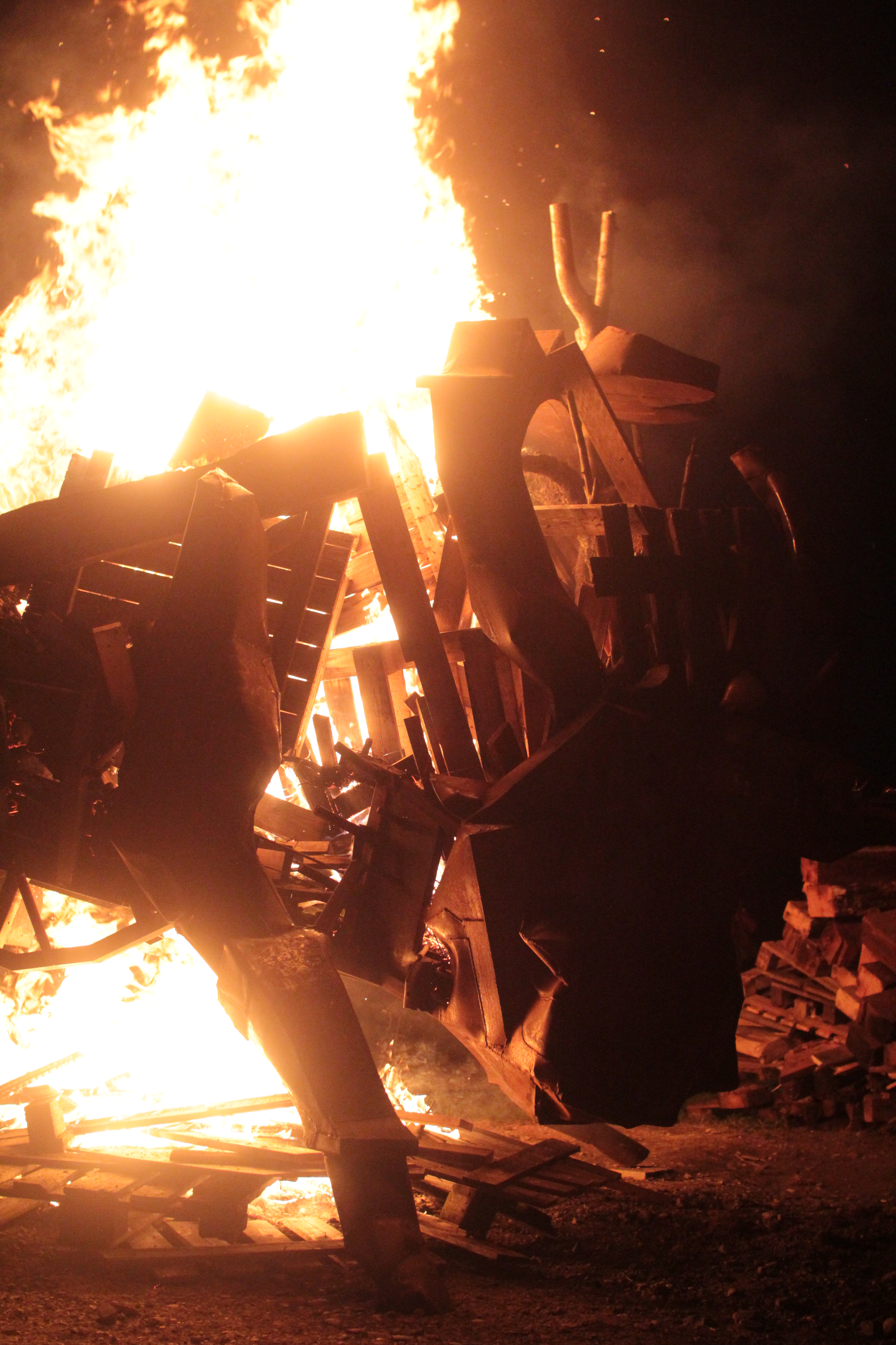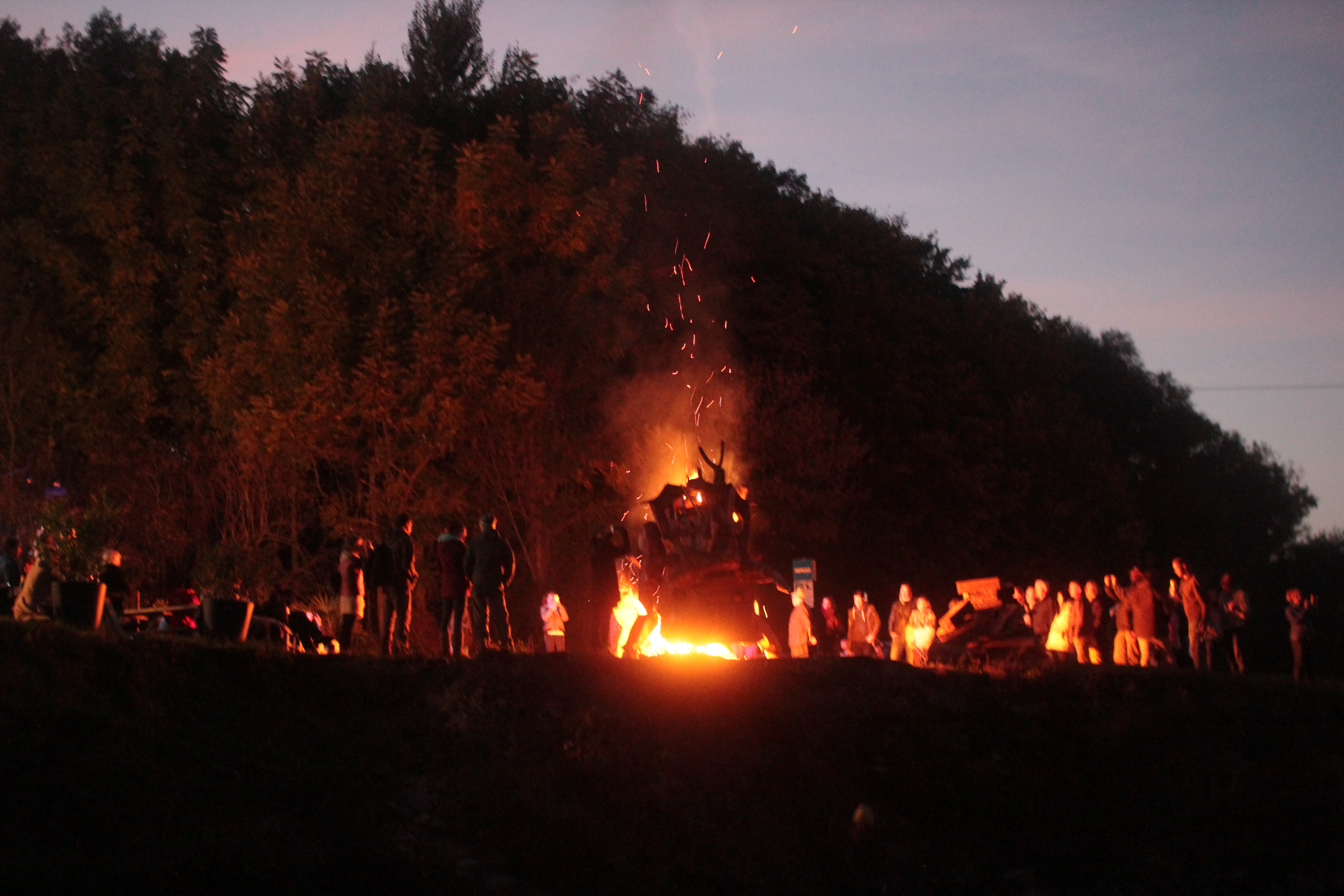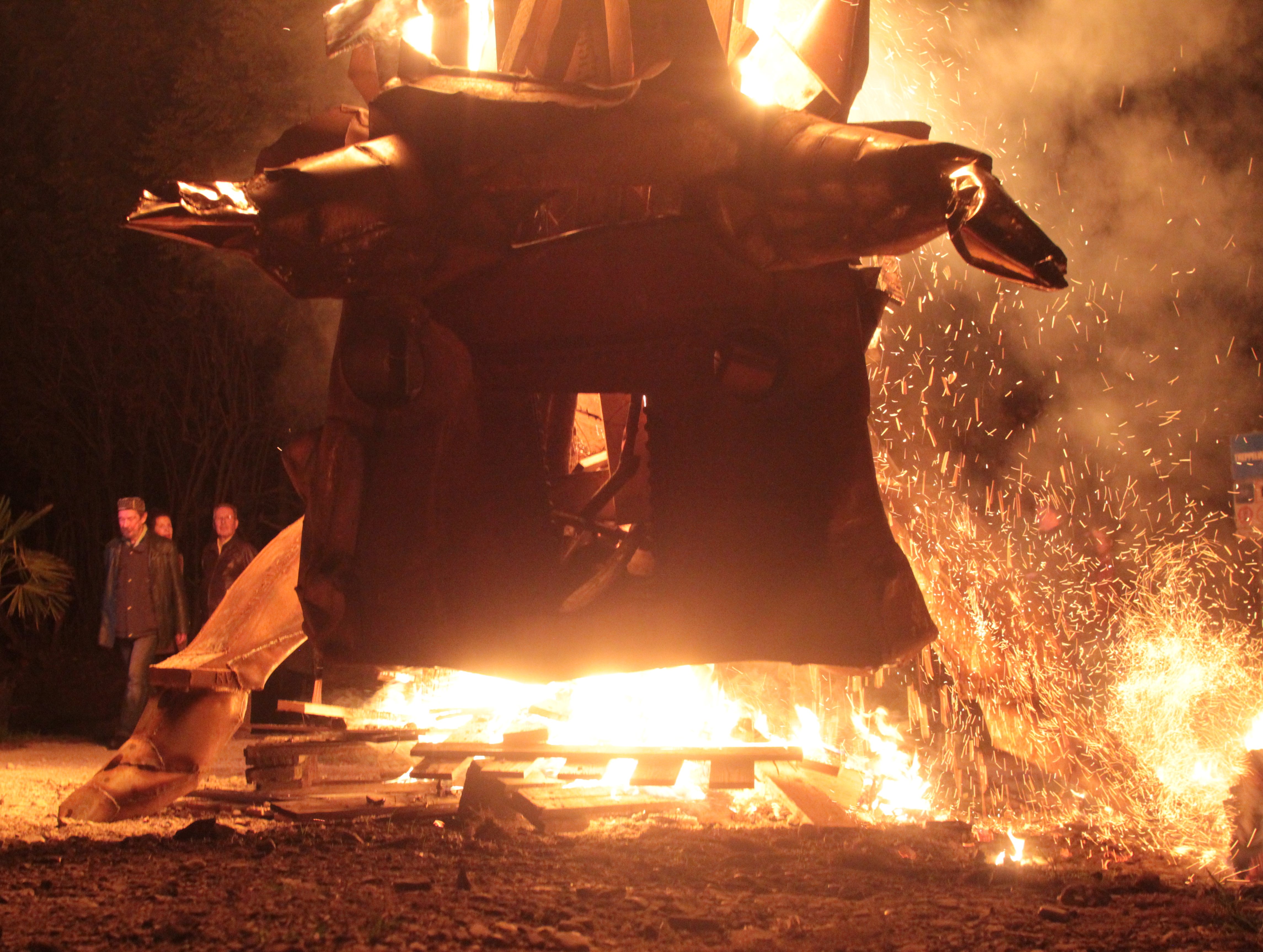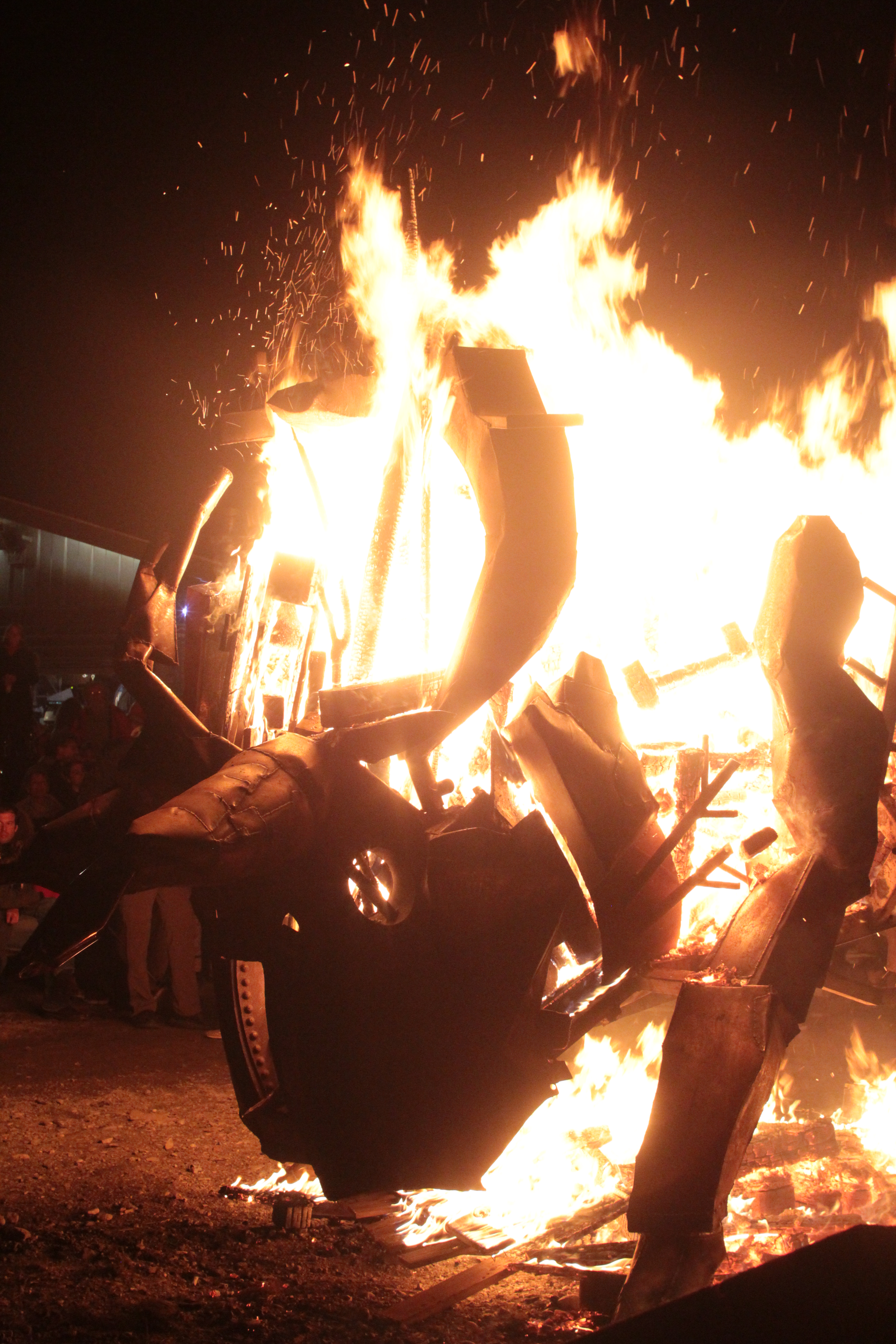 Mad Cow – oder Carnotaurus – ist ein tonnenschwerer Stahl-Bulle, der durch Feuer zum Leben erwacht. Eine Skulptur, geschweißt in über 1500 Stunden Arbeit in den letzten 3 Jahren von Christian “Cricri” Marmorstein aus Weidling. Stark und Intelligent: der Bulle funktioniert als Feuerkorb, in mehreren Schichten Stahlblech gearbeitet, durch Luftströme und Wasser gekühlt, um während des Abbrands stabil zu bleiben. Unterstützung erhielt Cricri beim Transport, bei der Materialbeschaffung und der Installation des Bullen beim Uferhaus in Klosterneuburg. Die Namen einiger Mitstreiter sind auf dem Werk verewigt. Am 13.10.2019 erwachte der Bulle zum Leben. Ich und ein paar andere Burning Man Community Mitglieder aus Österreich waren dabei.