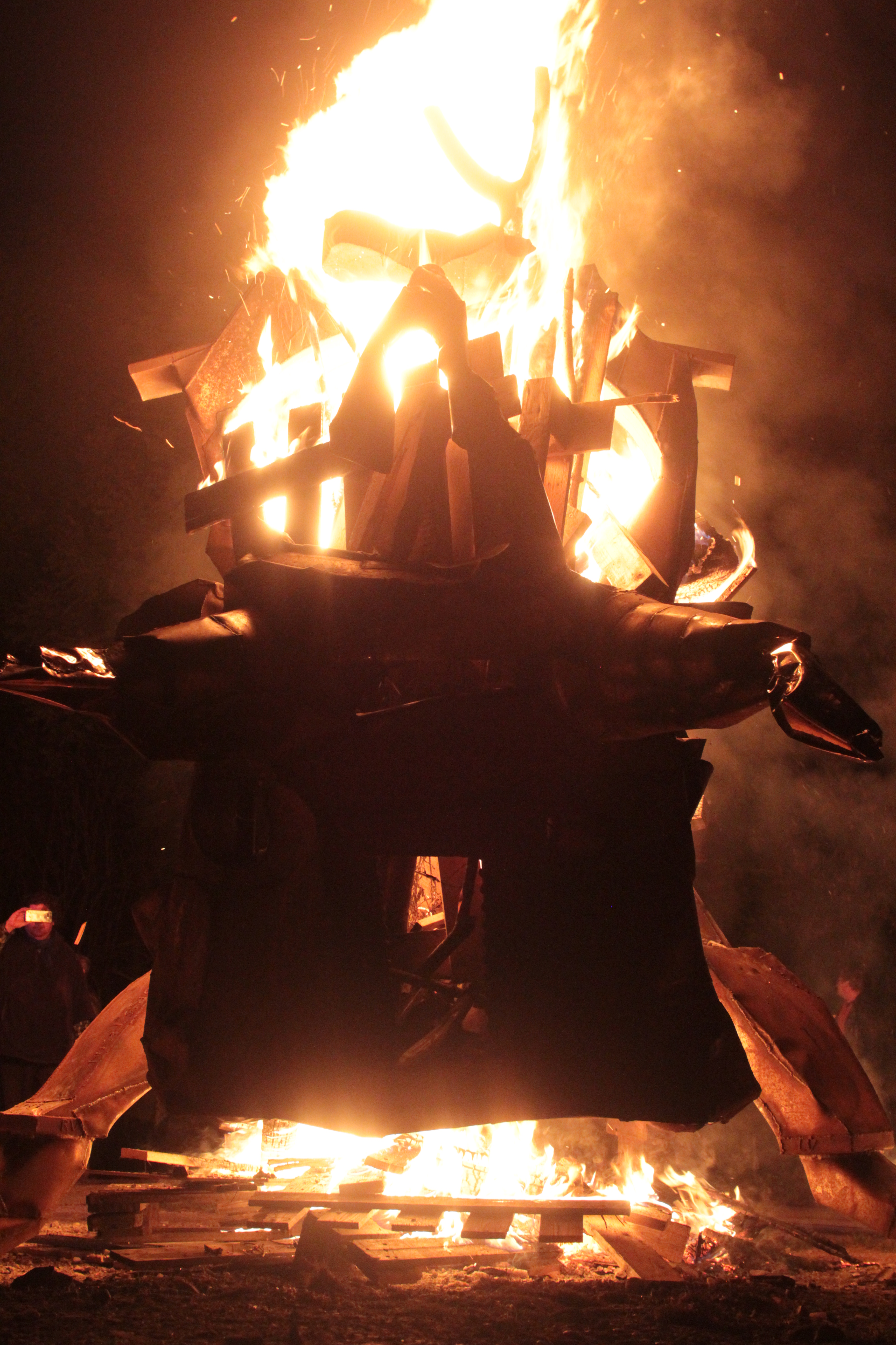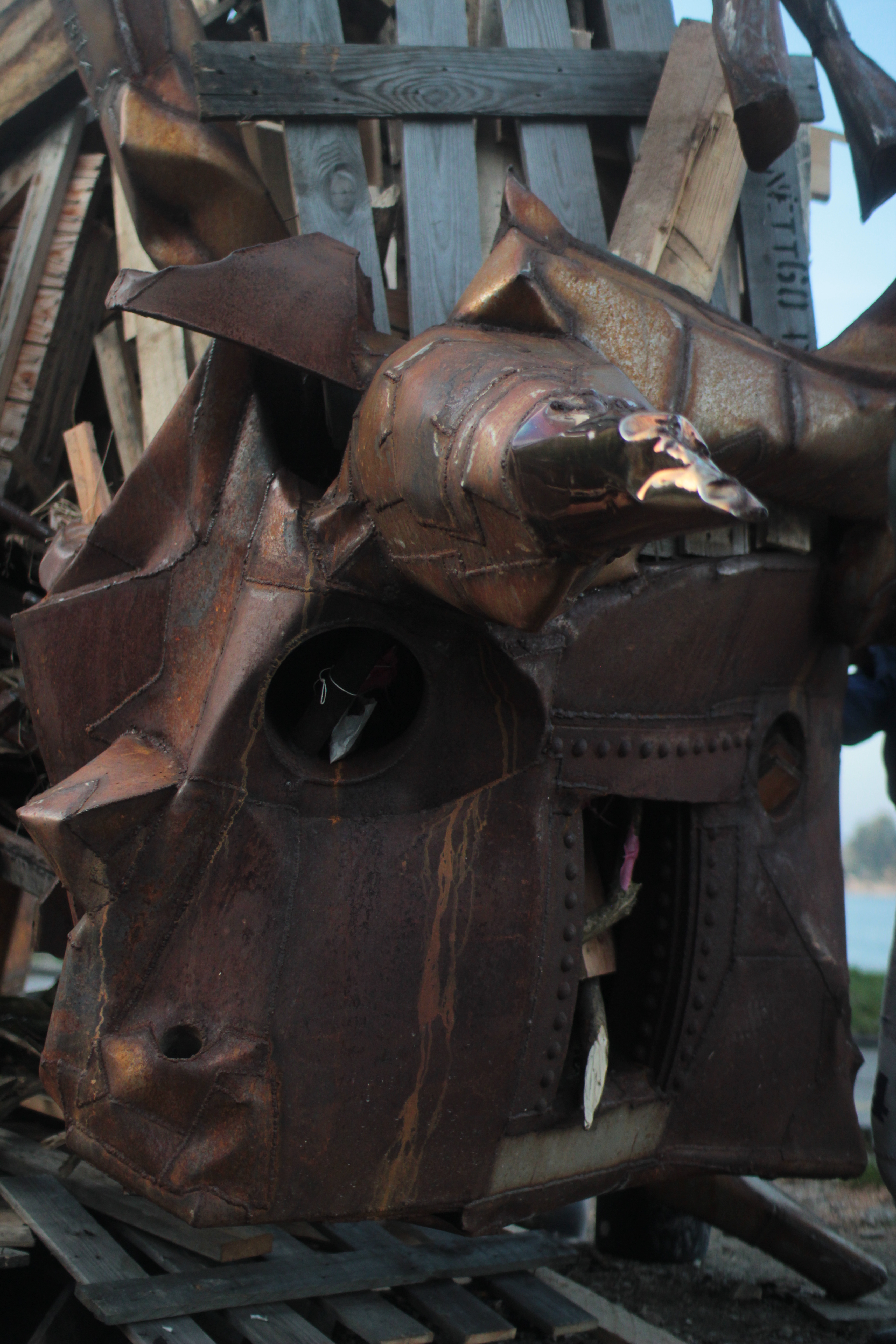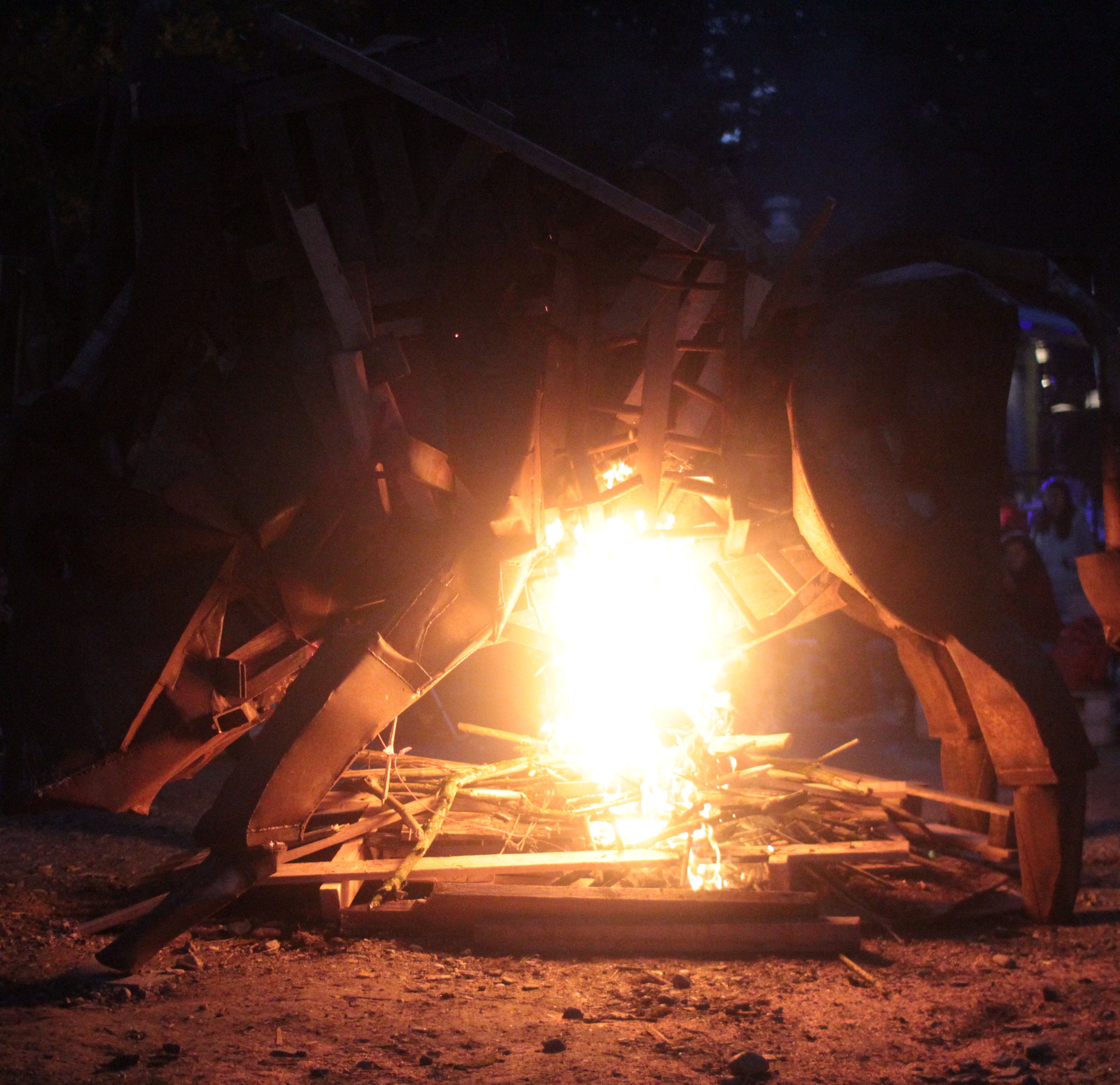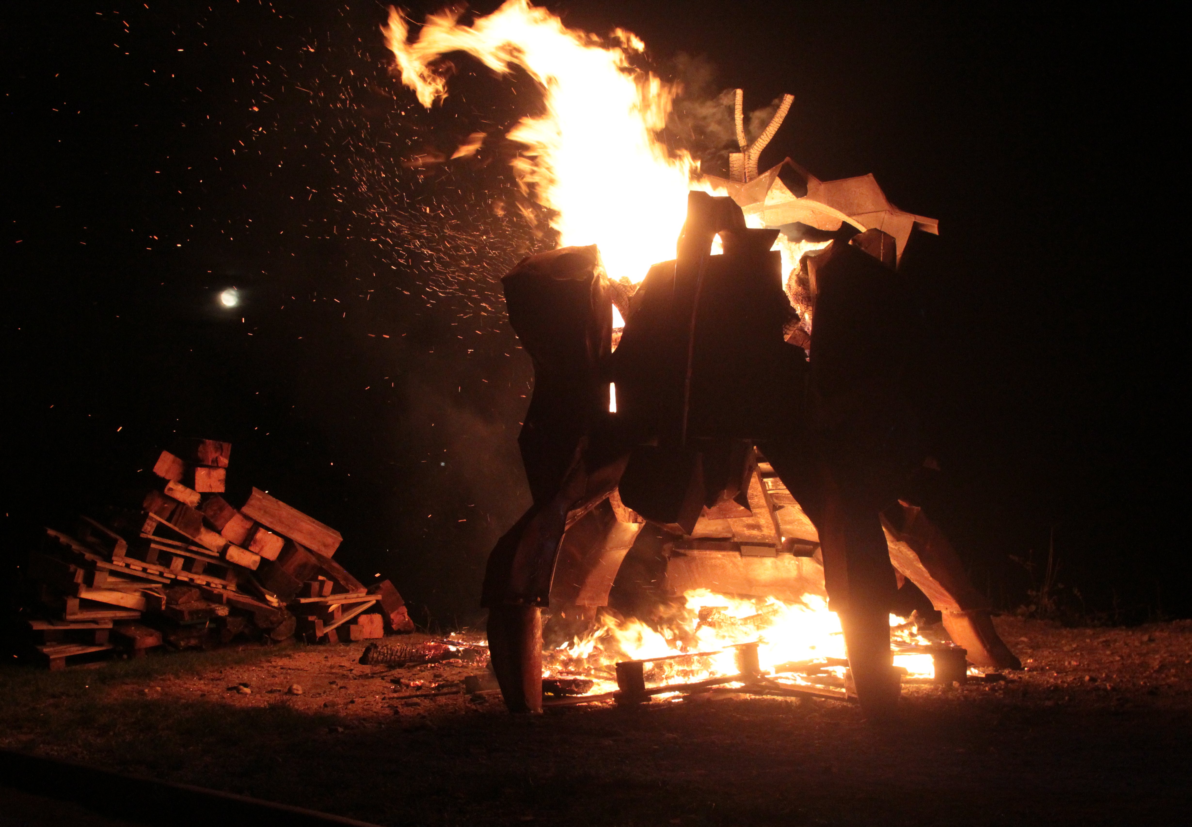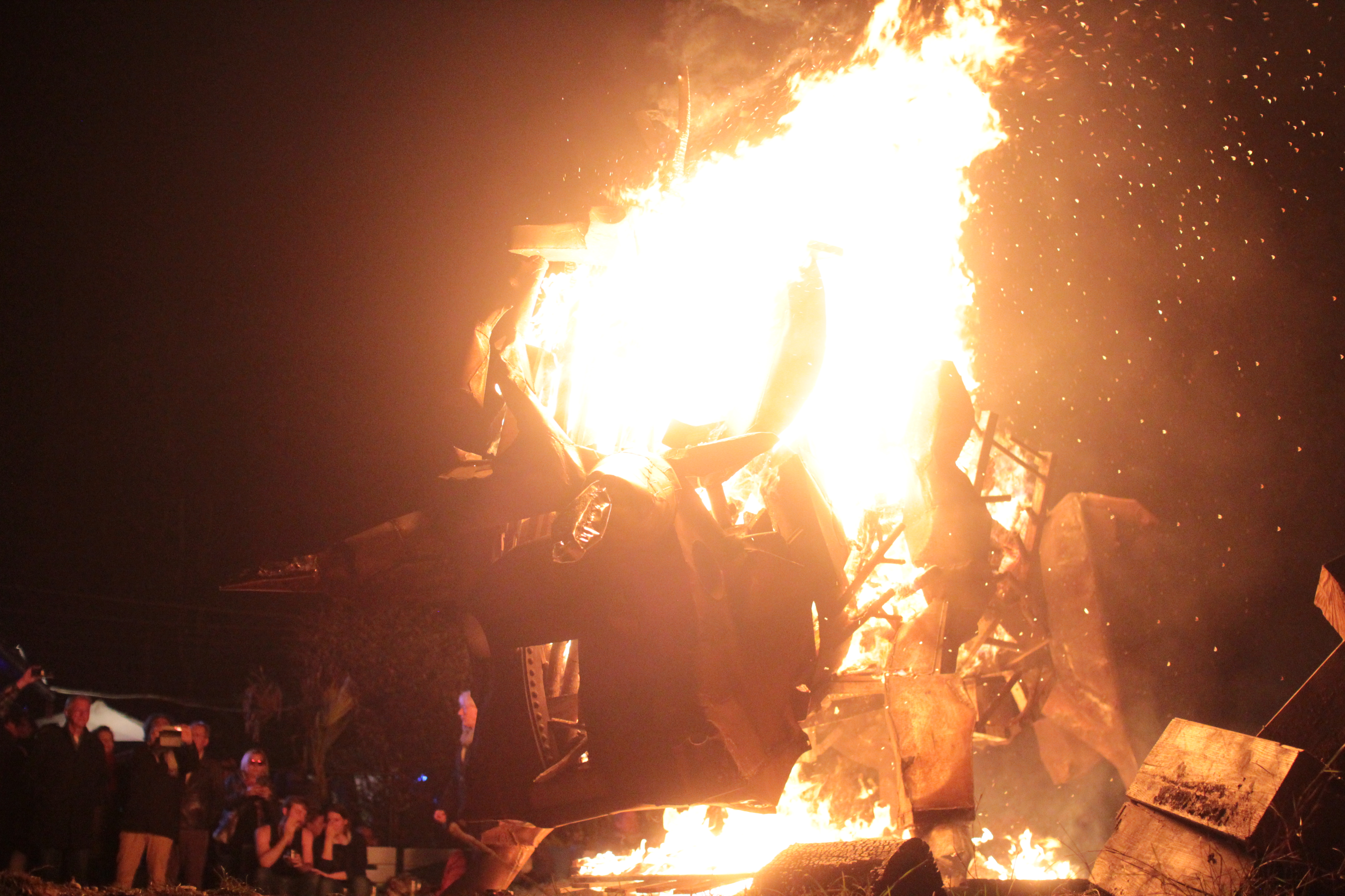Mad Cow – oder Carnotaurus – ist ein tonnenschwerer Stahl-Bulle, der durch Feuer zum Leben erwacht. Eine Skulptur, geschweißt in über 1500 Stunden Arbeit in den letzten 3 Jahren von Christian “Cricri” Marmorstein aus Weidling. Stark und Intelligent: der Bulle funktioniert als Feuerkorb, in mehreren Schichten Stahlblech gearbeitet, durch Luftströme und Wasser gekühlt, um während des Abbrands stabil zu bleiben. Unterstützung erhielt Cricri beim Transport, bei der Materialbeschaffung und der Installation des Bullen beim Uferhaus in Klosterneuburg. Die Namen einiger Mitstreiter sind auf dem Werk verewigt. Am 13.10.2019 erwachte der Bulle zum Leben. Ich und ein paar andere Burning Man Community Mitglieder aus Österreich waren dabei.
