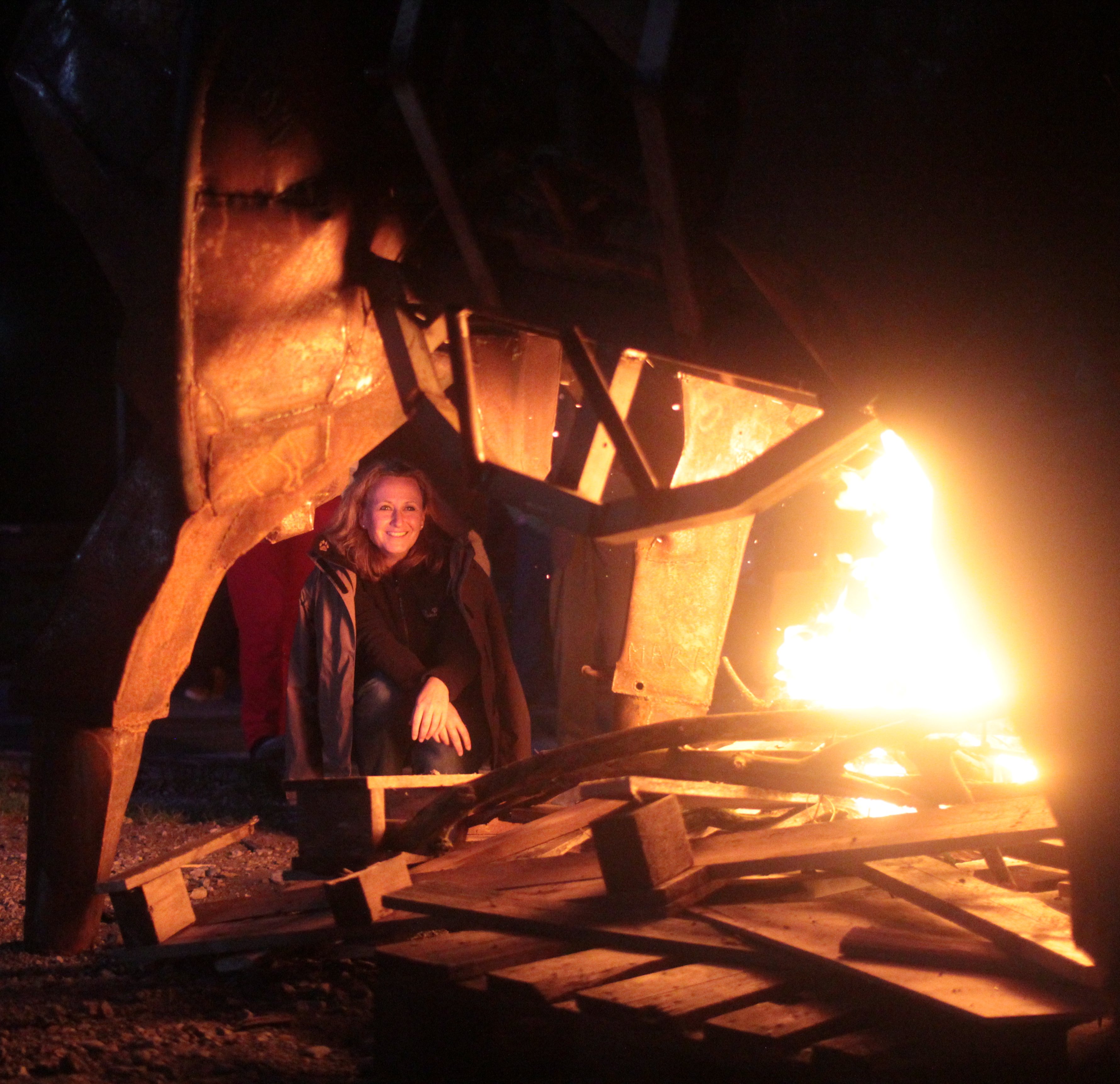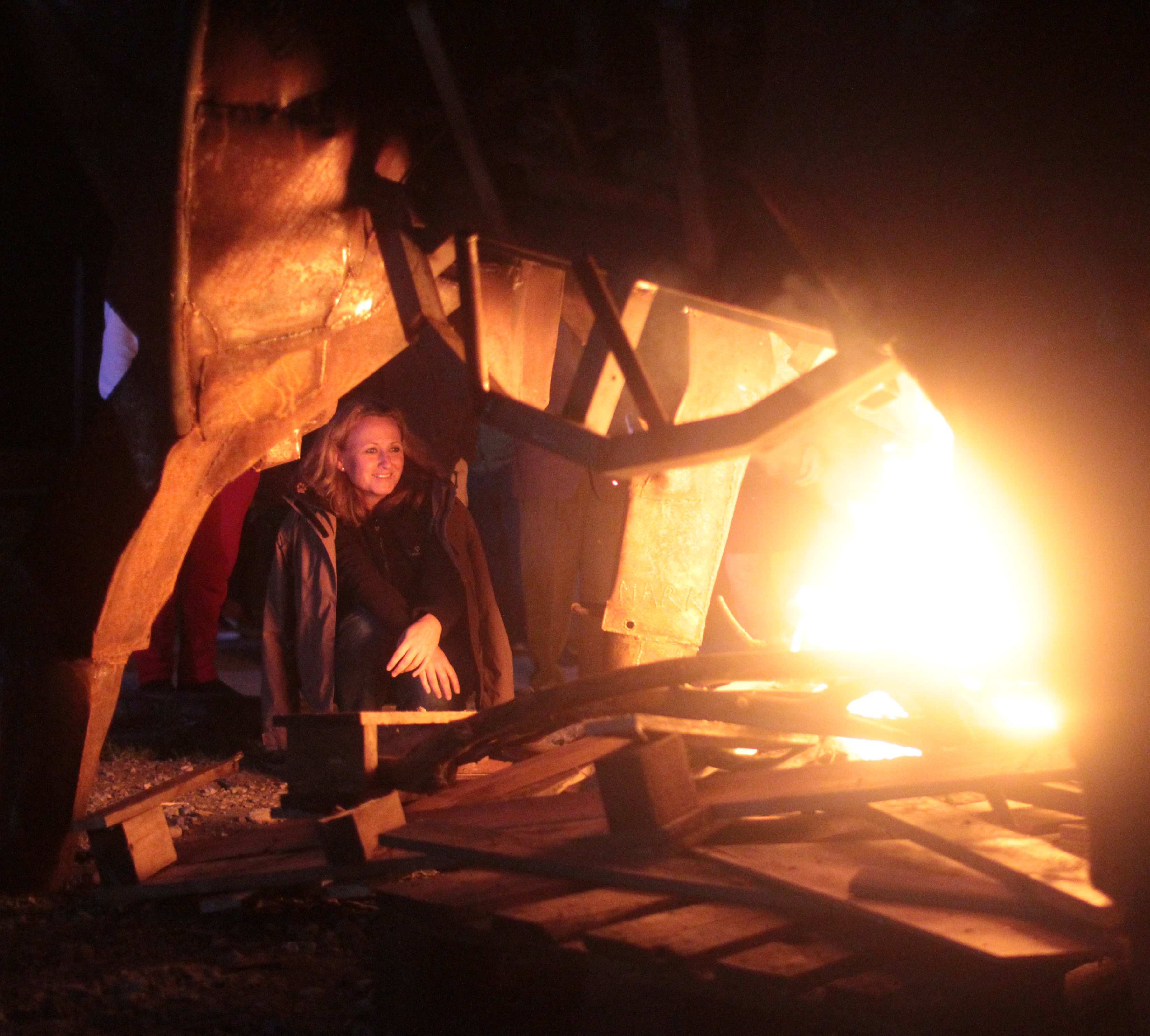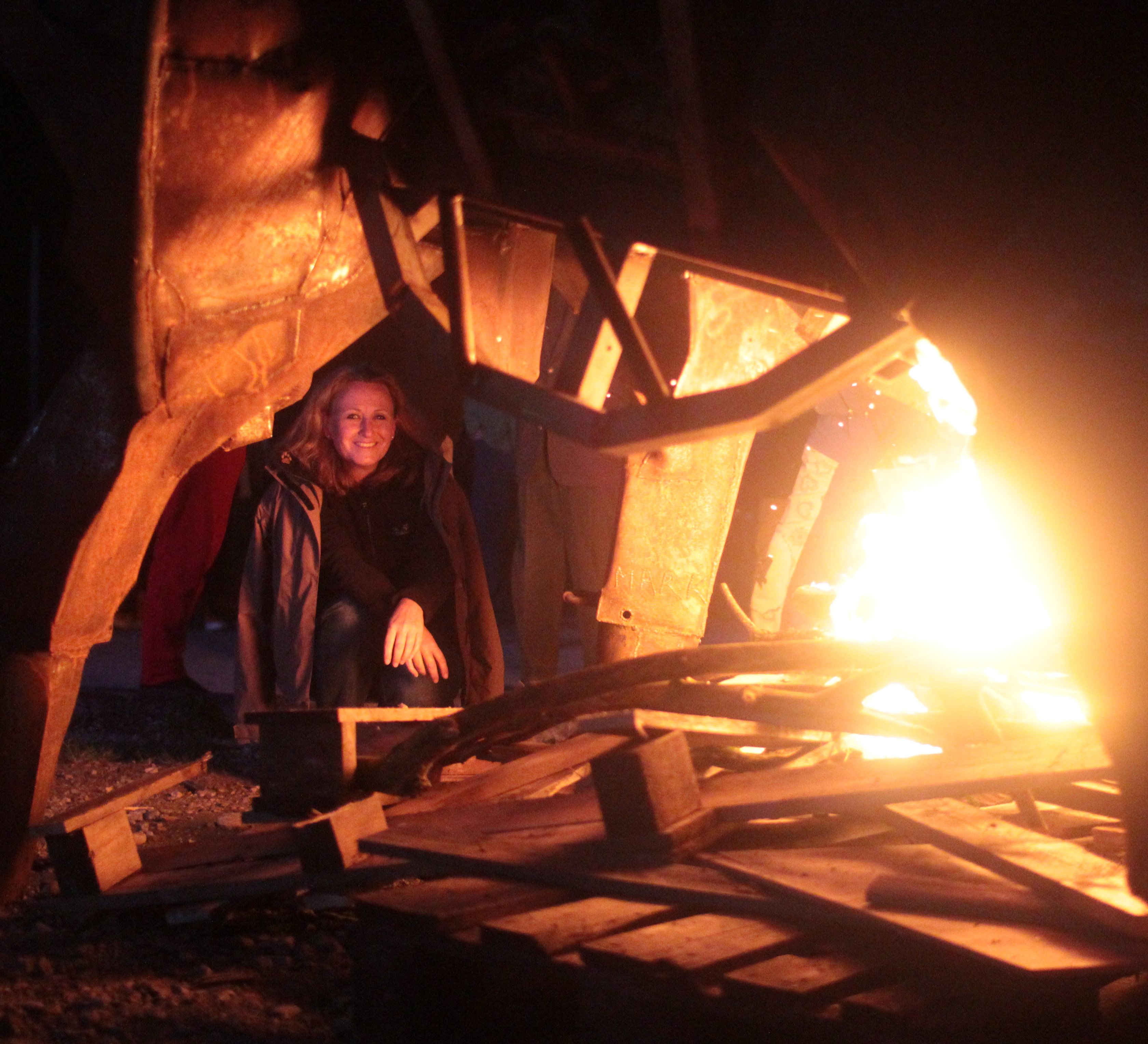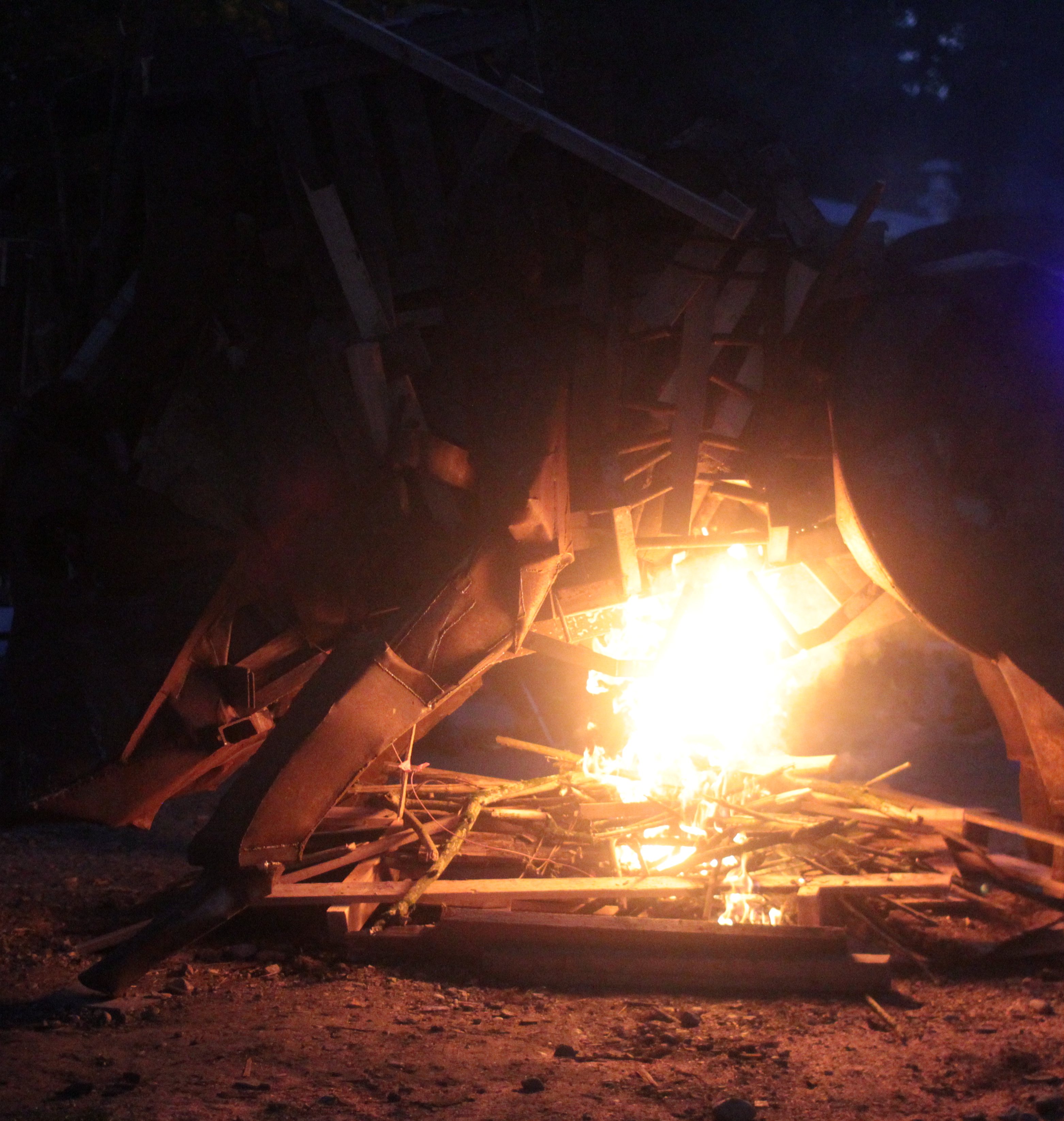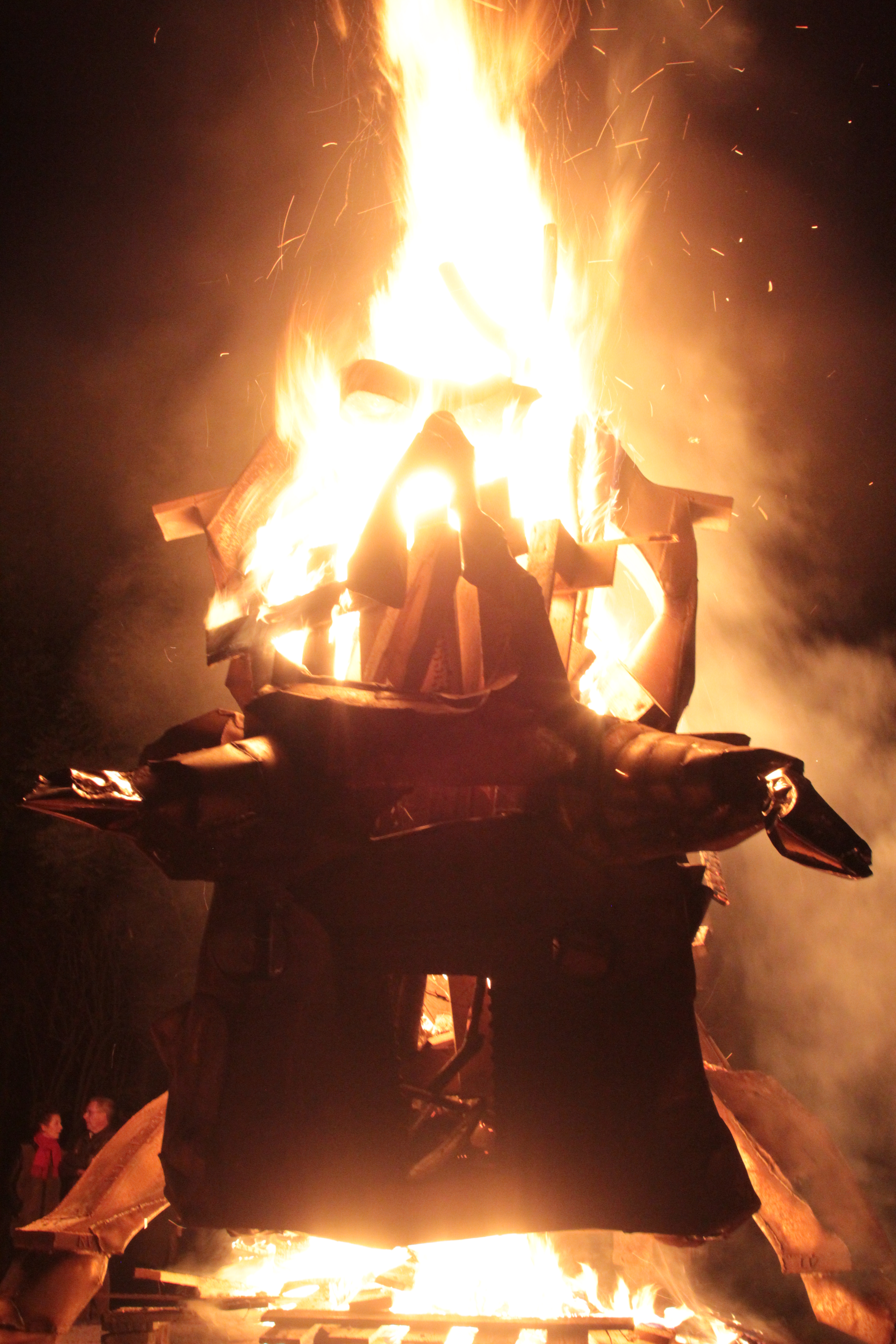 Mad Cow – oder Carnotaurus – ist ein tonnenschwerer Stahl-Bulle, der durch Feuer zum Leben erwacht. Eine Skulptur, geschweißt in über 1500 Stunden Arbeit in den letzten 3 Jahren von Christian “Cricri” Marmorstein aus Weidling. Stark und Intelligent: der Bulle funktioniert als Feuerkorb, in mehreren Schichten Stahlblech gearbeitet, durch Luftströme und Wasser gekühlt, um während des Abbrands stabil zu bleiben. Unterstützung erhielt Cricri beim Transport, bei der Materialbeschaffung und der Installation des Bullen beim Uferhaus in Klosterneuburg. Die Namen einiger Mitstreiter sind auf dem Werk verewigt. Am 13.10.2019 erwachte der Bulle zum Leben. Ich und ein paar andere Burning Man Community Mitglieder aus Österreich waren dabei.
