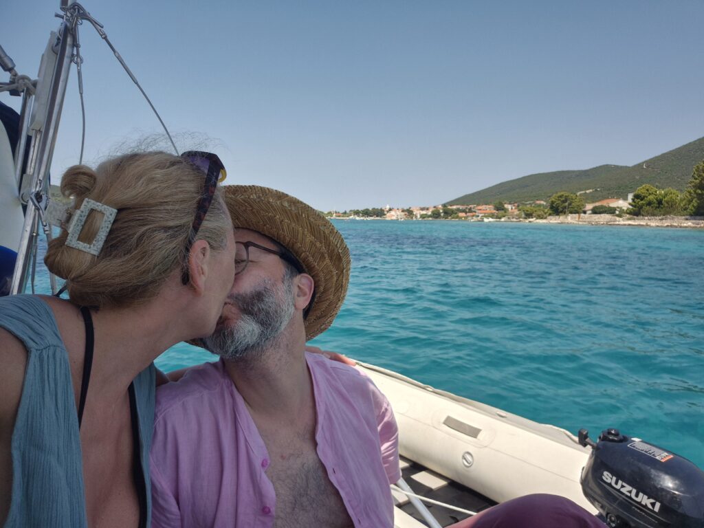 Our love for the ocean and sustainable holidays brought us again to sailing in Croatia. We spent a week on the ocean, driven by the wind and powered by photovoltaics and the sun. As responsible owners of a fake business, we visited our Do It Yourself Yoga Studio on Tramerka, an uninhabited island and set up a new sign. The goats kept the business running in our absence.