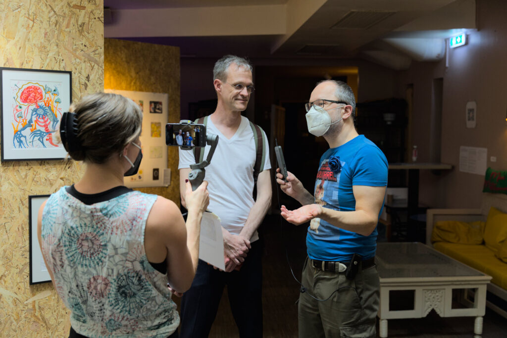 In June we remembered our friend Judy Schossböck whose life ended because of ME/CFS. Leo contributed to the ArtForME fundraiser by organizing a live stream and interviews with attendees. Part of it can be seen in this video by Matthias Mollner about Judy in the Sky – Art for ME.